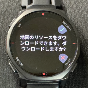 スマートウォッチ側で該当範囲の地図をダウンロードをしていなければここでダウンロード